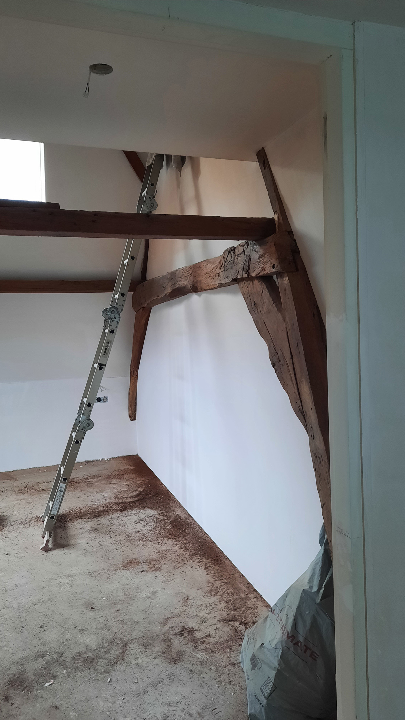 Het ontwerp voor de twee appartementen is zorgvuldig afgestemd op de bestaande 17e eeuwse structuur van het pand. De grootste van de twee kluizen is opgenomen in het ontwerp en herbergt nu de keuken van het beneden-appartement. Het moerbalken en kinderbinten plafond werd hersteld en ook de originele spanten in de kap zijn behouden en volledig in zicht gebracht, waardoor het historische karakter voelbaar blijft. Voor elk afzonderlijk bouwdeel is een goede balans gevonden tussen de monumentale waarde en de beste technische oplossing. Daarnaast zijn er flinke constructieve verbeteringen doorgevoerd aan de voorgevel en zijgevel. Deze transformatie toont aan hoe erfgoed en eigentijdse architectuur hand in hand kunnen gaan, met VIS Architecten als schakel tussen verleden en toekomst.