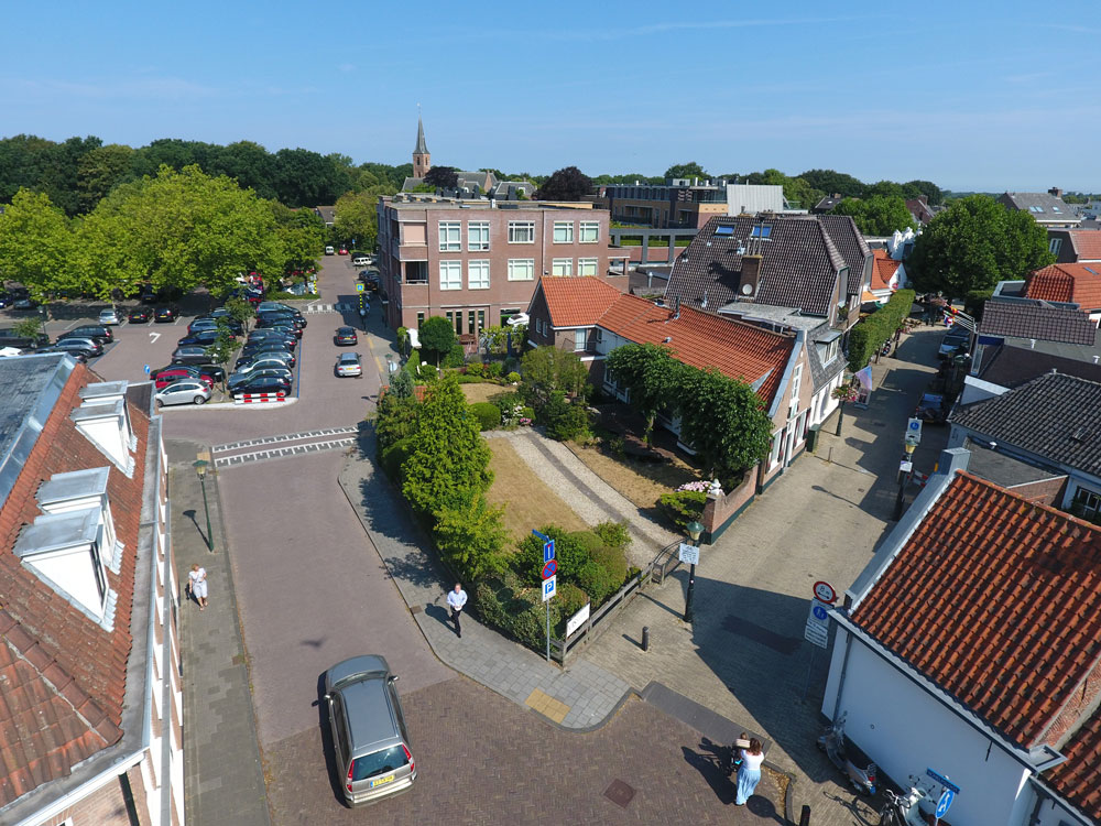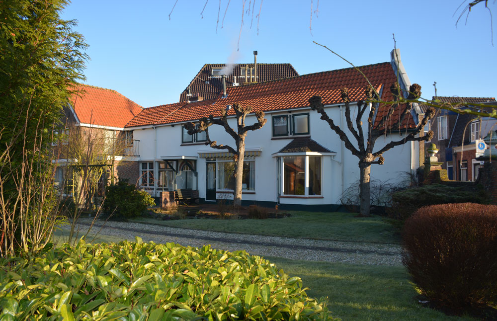 Links een oude zwart-wit foto van een van het 18e-eeuwse woonhuis aan de kerkstraat te Wassenaar, vergeleken met het rijksmonument tegenwoordig.