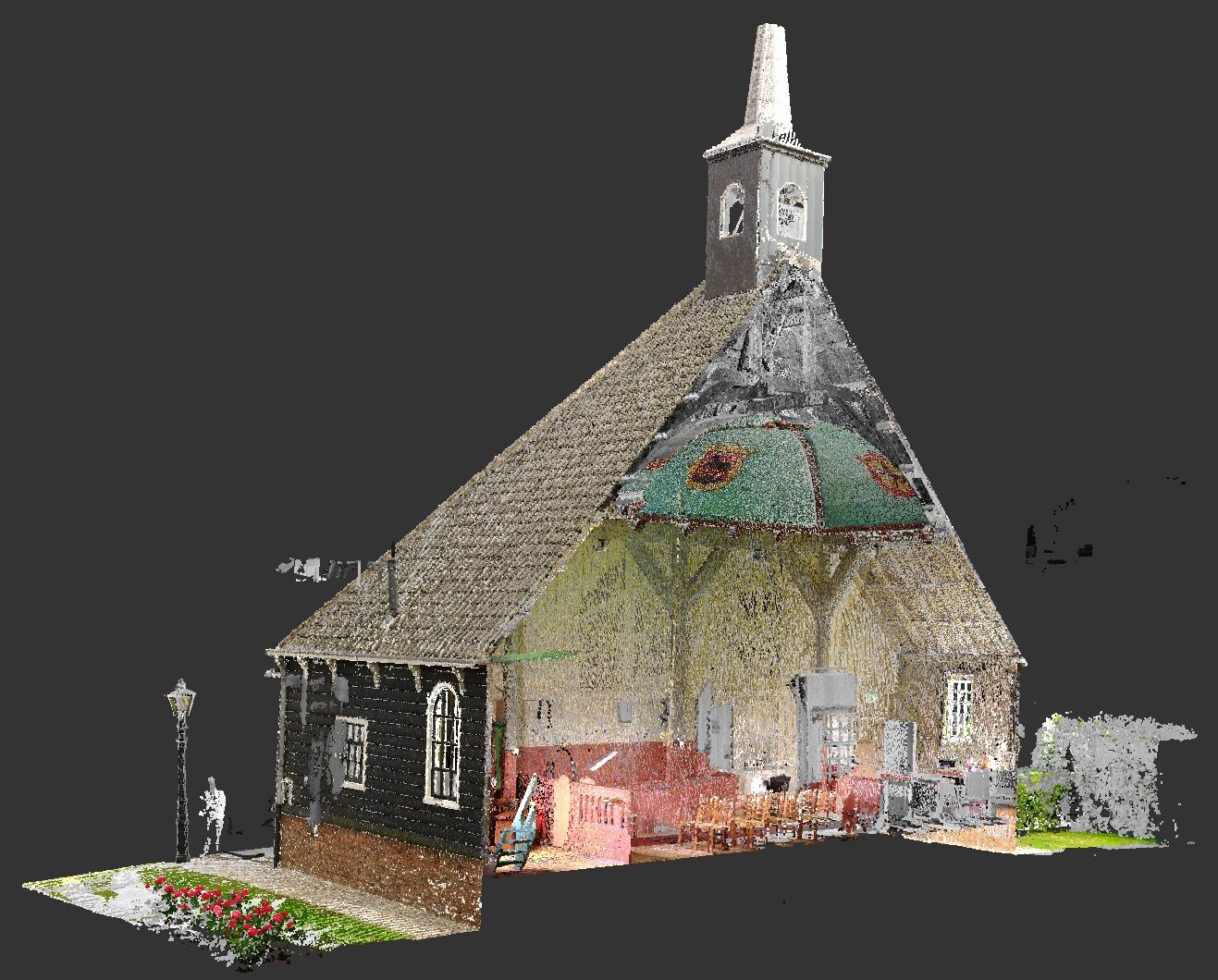 Met een gedetailleerde 3D-scan en bouwhistorisch onderzoek draagt VIS Architecten bij aan de verduurzaming en toekomstbestendige herontwikkeling van de karakteristieke Stolphoevekerk in Volendam.
