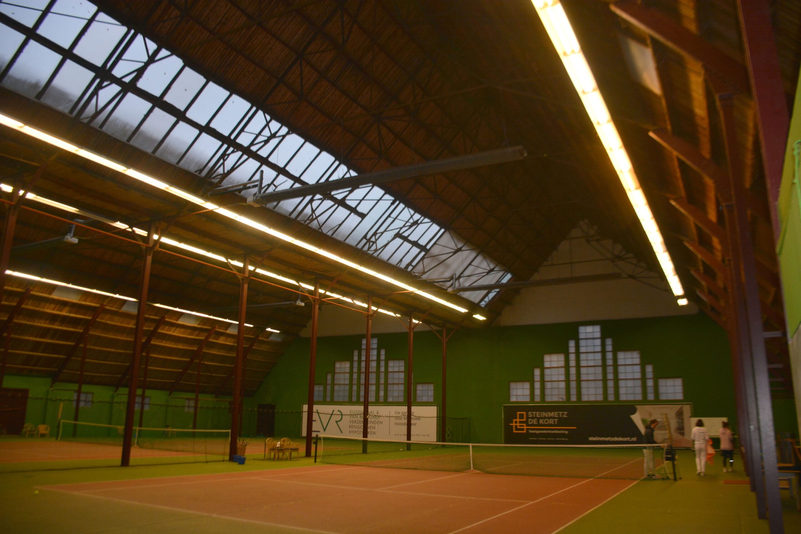 De nieuwe functies padel en fitness hebben een plek gekregen in de monumentale hal. Het is juist de spanning tussen het historische karakter en de eigentijdse sportbeleving die beide kwaliteiten sterker naar voren laat komen. Twee nieuwe lichtstraten brengen natuurlijk daglicht naar binnen, waardoor de sporthal een open en lichte uitstraling kreeg. De zichtlijnen tussen de padelbanen en de fitness komen daarbij goed tot hun recht, waardoor de open hal niet voelt als losse onderdelen, maar als één samenhangende sportomgeving. Tevens heeft een verduurzamingsslag plaatsgevonden, waarbij dak en gevels zijn geïsoleerd; de karakteristieke vensters voorzien zijn van monumentenglas en de dakkapellen en de lichtstraat van HR++ glas. In aanvulling daarop is er een nieuwe luchtbehandeling aangebracht en zijn er tussen de kappen (uit het zicht) zonnepanelen geplaatst, zodat techniek en duurzaamheid onopvallend samengaan. Om de voorgevel van de tennishal symmetrisch te completeren ontwierp VIS Architecten bovendien een serre aan de noordwestelijke vleugel.