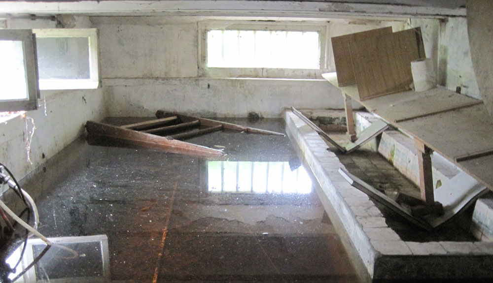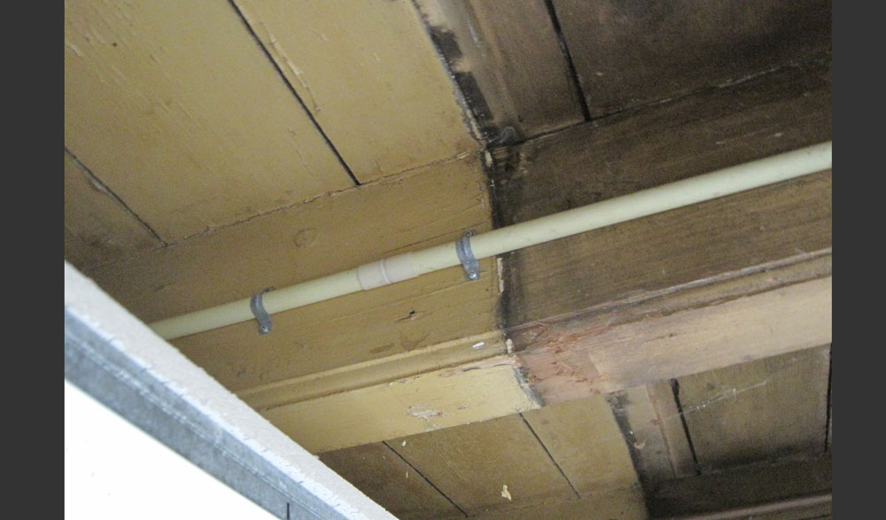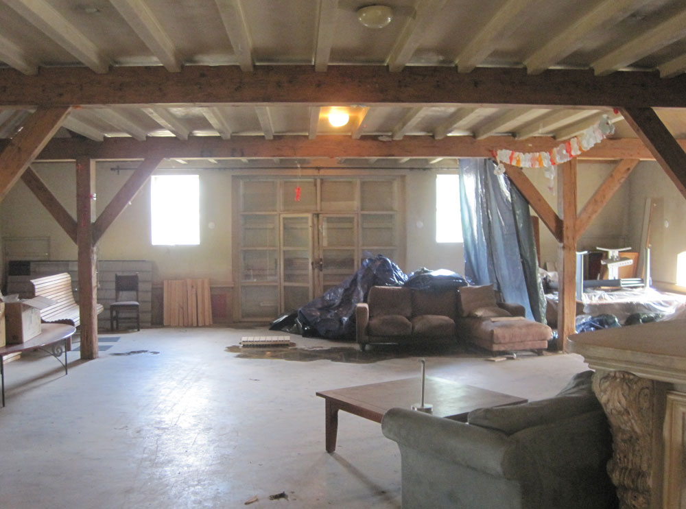 Hieronder de bovenste verdieping van het achterhuis van de boerderij. Voor de renovatie links, en rechts het ontwerp voor de renovatie.