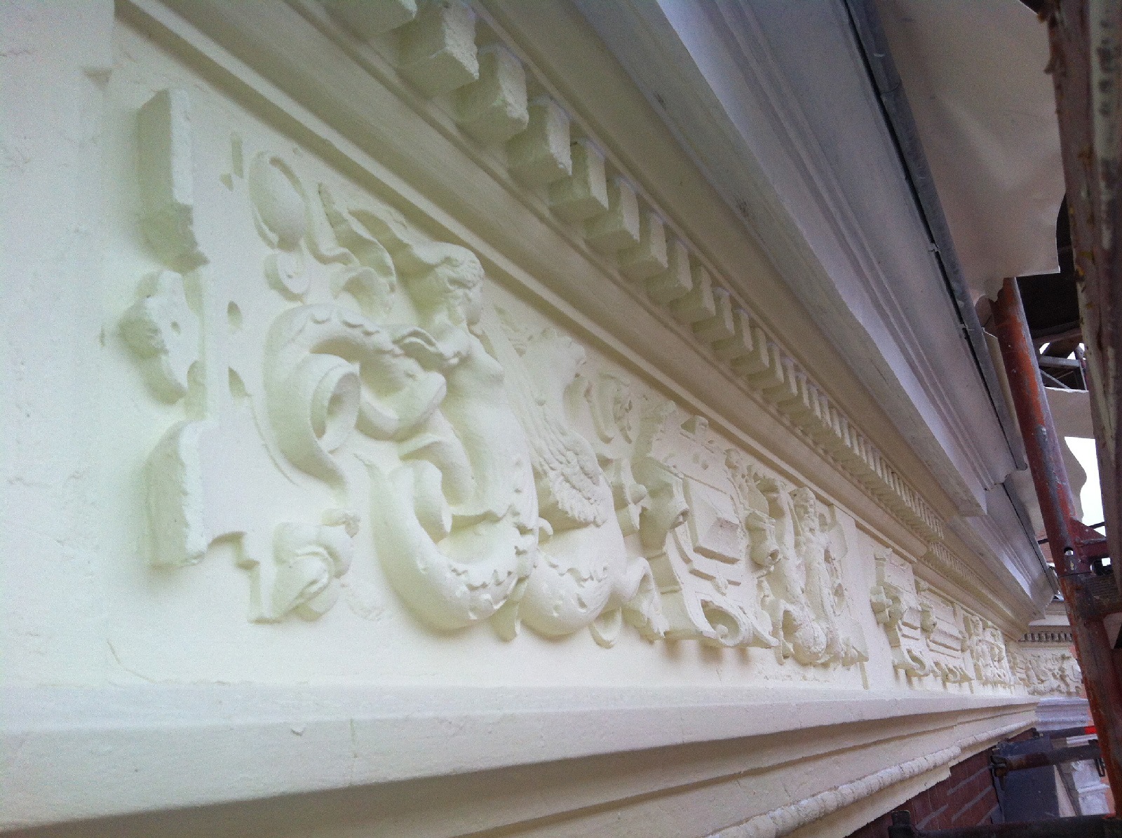 Na het verwijderen van de verflagen kwamen tal van scheuren, onvolkomenheden en technische gebreken aan het licht. De restauratie bood ruimte om deze grondig aan te pakken. Diverse gevelornamenten – waaronder lijsten, consoles en sierdetails – bleken dusdanig beschadigd of vervormd dat ze (deels) moesten worden aangeheeld of opnieuw vervaardigd. Door dit zorgvuldige herstel werden de historische kenmerken van het pand in ere hersteld.