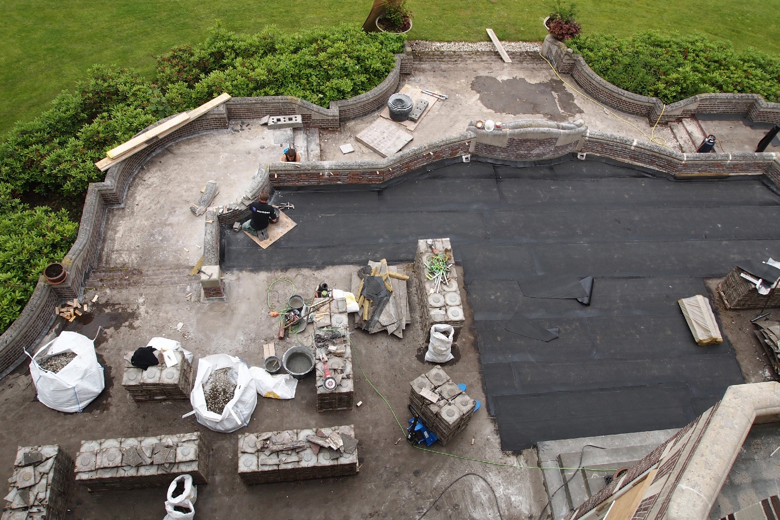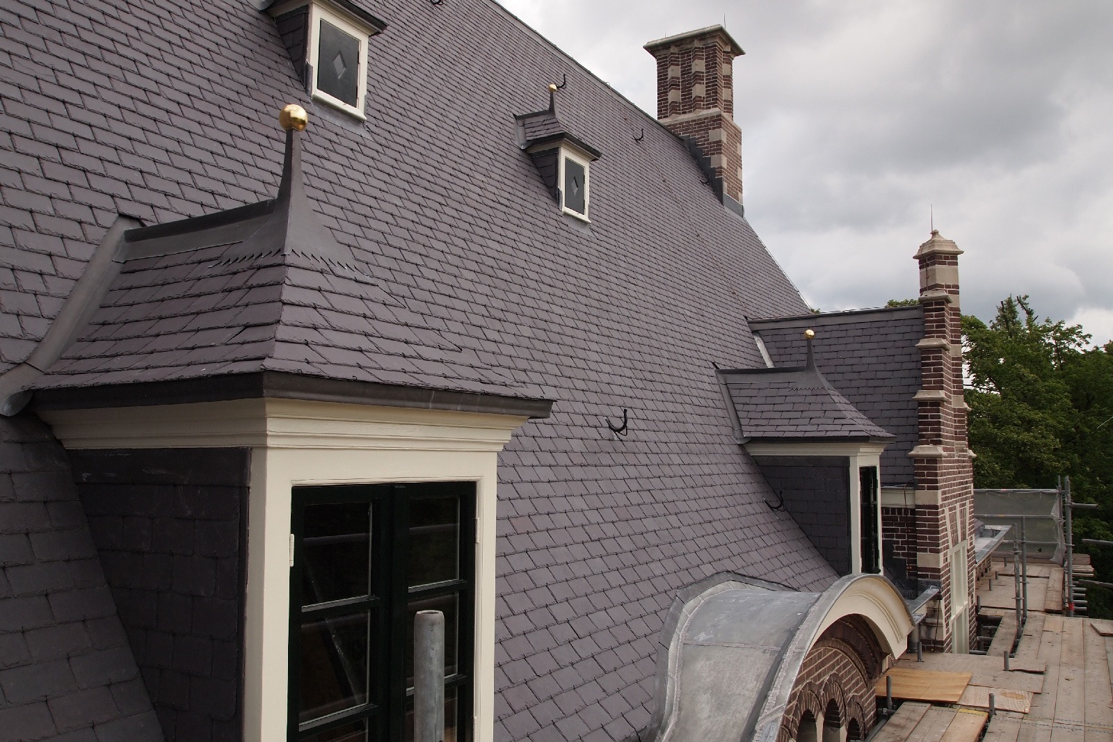 Het dak van Landgoed De Burgh kreeg een ingrijpende aanpak. Het leiendak, het loodwerk, de zinken goten, de toren en de ui zijn volledig gerestaureerd. Aangetast hout is vervangen en ander houtwerk zorgvuldig hersteld. De windvaan en de vergulde bekroning op de torenspitsen zijn teruggeplaatst, en de betontegels van het terras zijn vervangen door hardsteen in het oorspronkelijke patroon van banden en vierkanten.