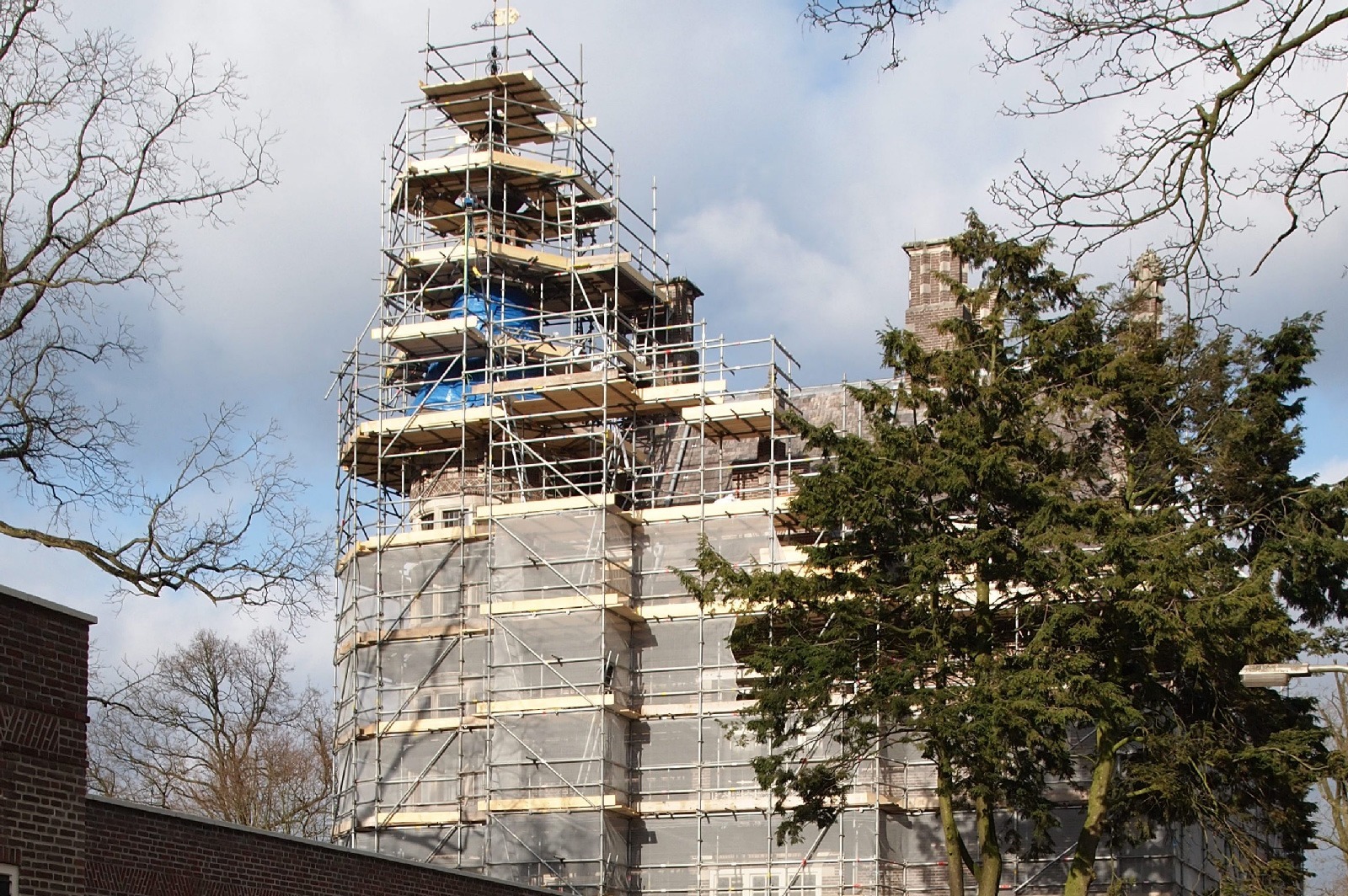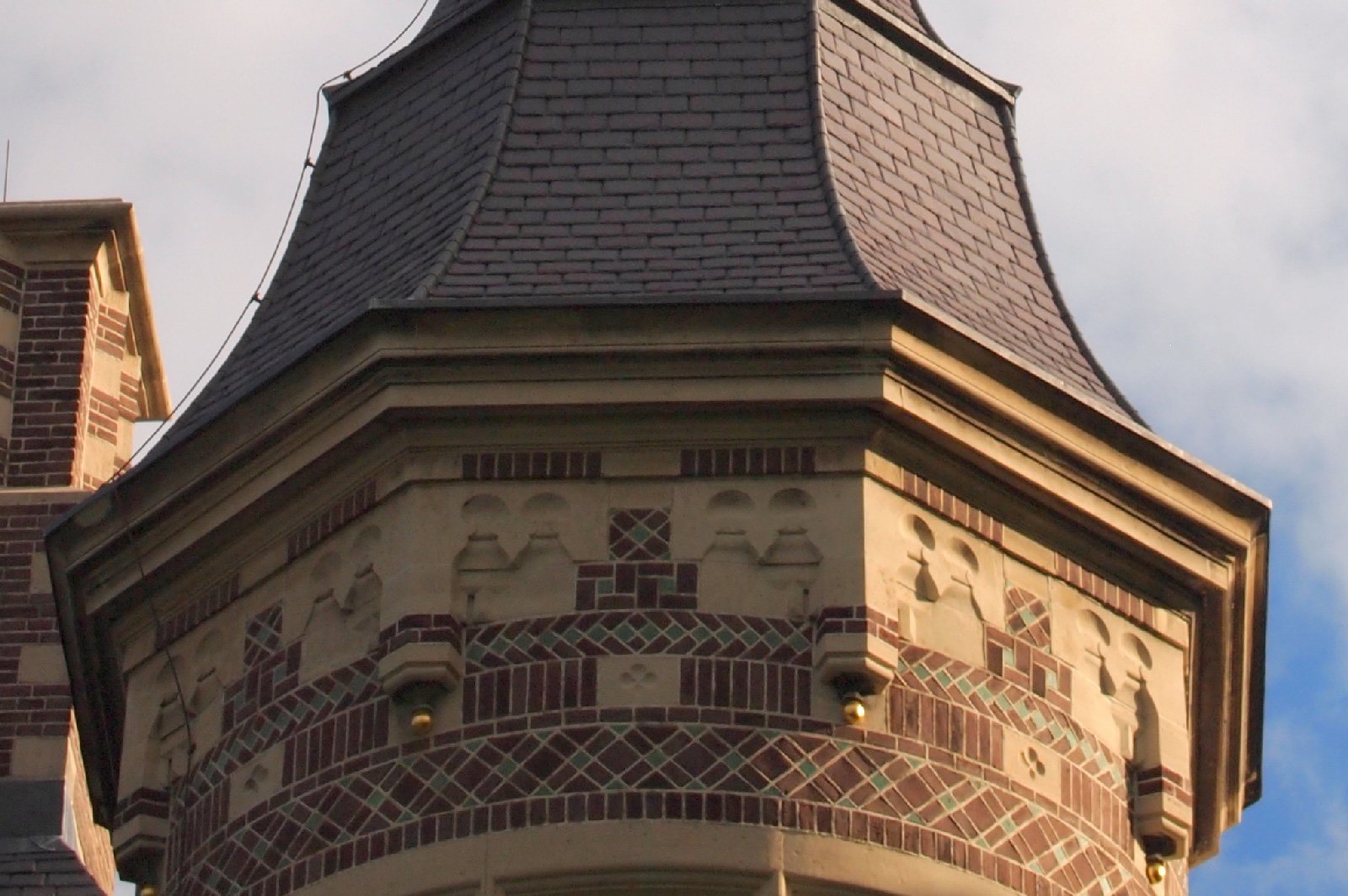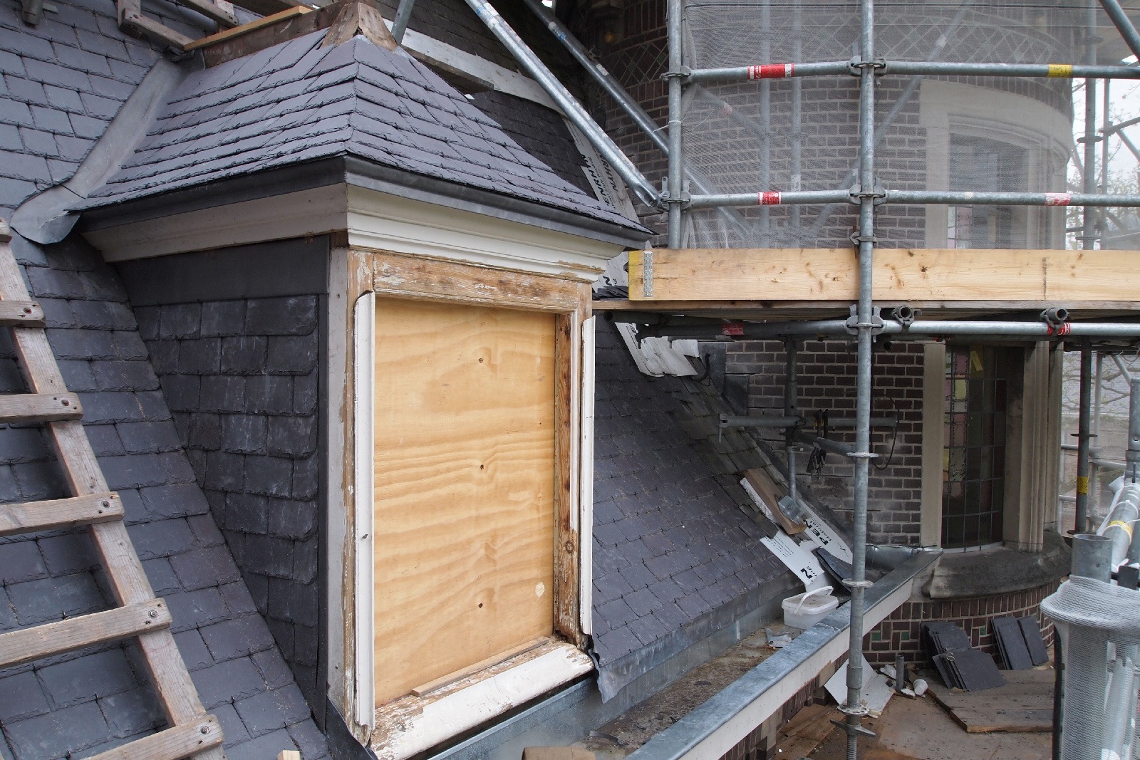 De uitdaging lag in het combineren van historisch getrouw herstel met moderne technieken om het gebouw toekomstbestendig te maken. De restauratie omvatte de volledige buitenschil, waaronder de leiendaken, goten, ornamenten, inboetwerk van het metselwerk, metalen gevelonderdelen en de glas-in-loodramen. Daarbij was precisie essentieel: elk detail, van de windvaan op de toren tot de sierlijke luifel boven de ingang, moest zorgvuldig worden behandeld om zowel esthetisch als technisch recht te doen aan het monument.